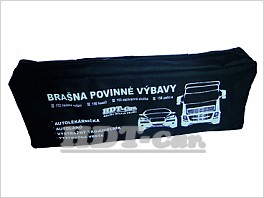 Set povinné výbavy obsahuje brašnu, ve které je: lékárna náplň, výstražný trojúhelník, lano 1800 kg, výstražná vesta. Tento set je za zvýhodněnou cenu.