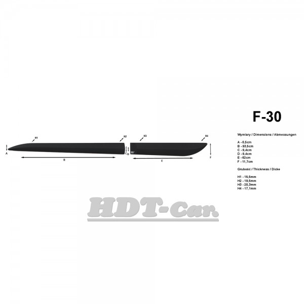 Boční ochranné lišty slouží k ochraně dveří před poškozením a také jako doplněk automobilu. Lišty jsou přesně délkou přizpůsobeny na typ vozu. Materiál je guma (odolná vůči mechanickému poškození). Montují se pomocí samolepící fólie. Lepit na velmi dobře odmaštěnou a suchou plochu.