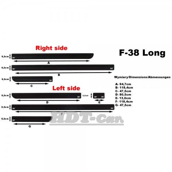 Boční ochranné lišty slouží k ochraně dveří před poškozením a také jako doplněk automobilu. Lišty jsou přesně délkou přizpůsobeny na typ vozu. Materiál je guma (odolná vůči mechanickému poškození). Montují se pomocí samolepící fólie. Lepit na velmi dobře odmaštěnou a suchou plochu.